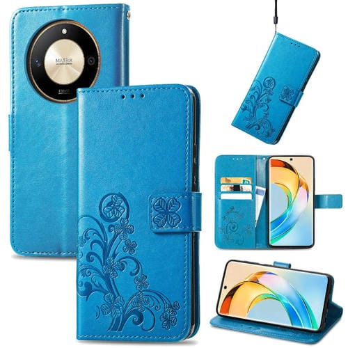 Pour Honor X50 Étui de téléphone en cuir gaufré à fermeture à quatre feuilles (bleu)