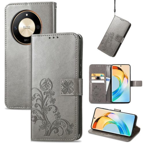 Pour Honor X50 Étui de téléphone en cuir gaufré à fermeture à quatre feuilles (gris)