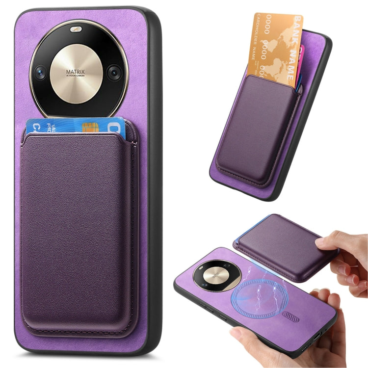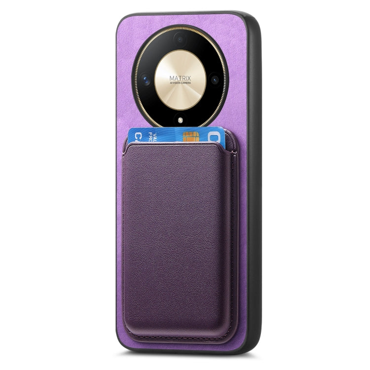 Funda para Honor X50 Pro 5G Retro Magsafe Card Bag PU con Contraportada (Púrpura)