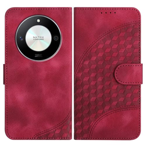 Funda de Cuero para Honor X50 Yx0060 con Relieve y Cabeza de Elefante con Cordón (Rojo Rosa)