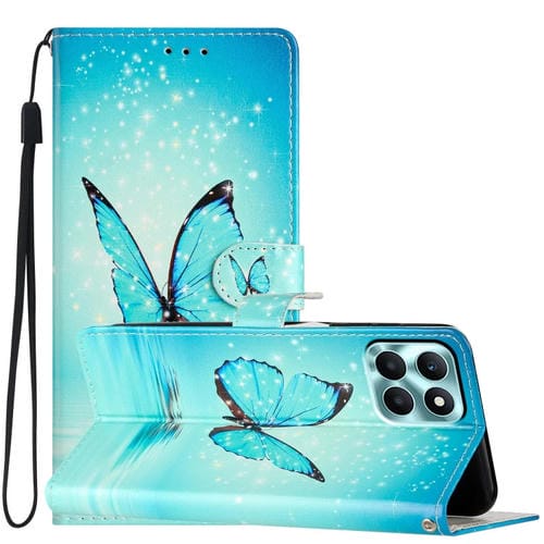 Pour Honor X6A Étui de téléphone en cuir à dessin coloré (Papillon bleu)