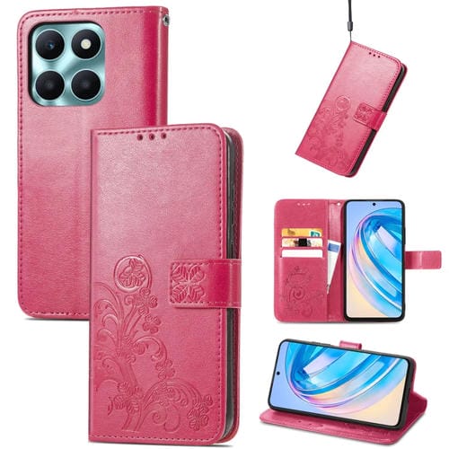 Funda para Teléfono Honor X6A Cuero en Relieve con Cierre de Cuatro Hojas (Magenta)