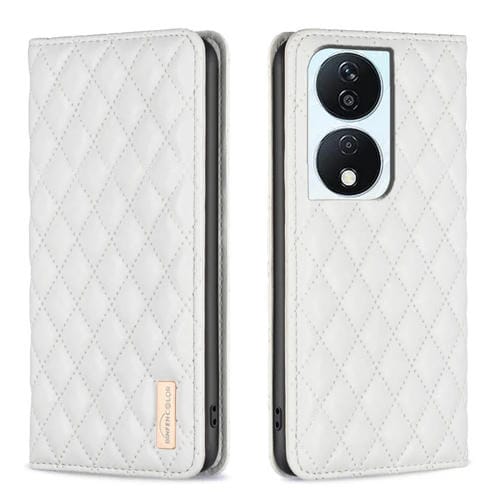 Funda para Honor X7B con Tapa de Cuero Magnético y Diseño Diamond Lattice (Blanco)