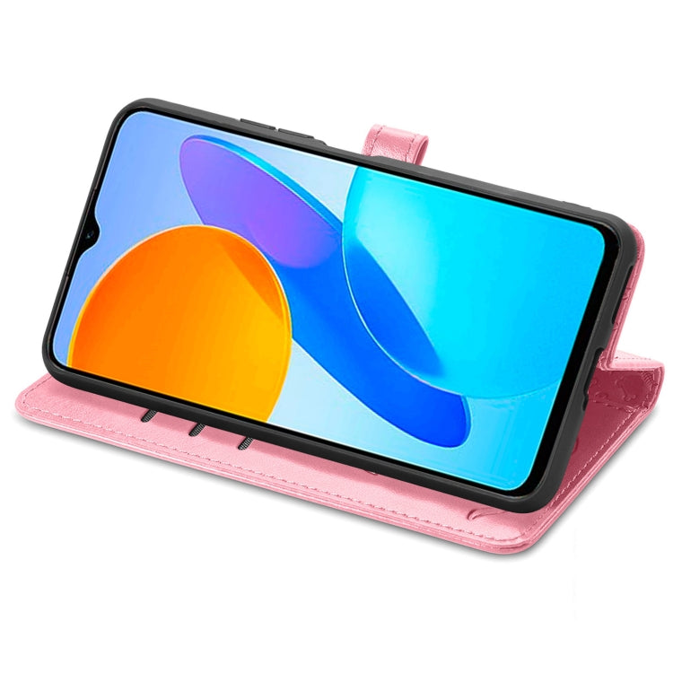 Estuche de Cuero en Relieve para Honor X8 5G Cute Cat And Dog (Rosa)
