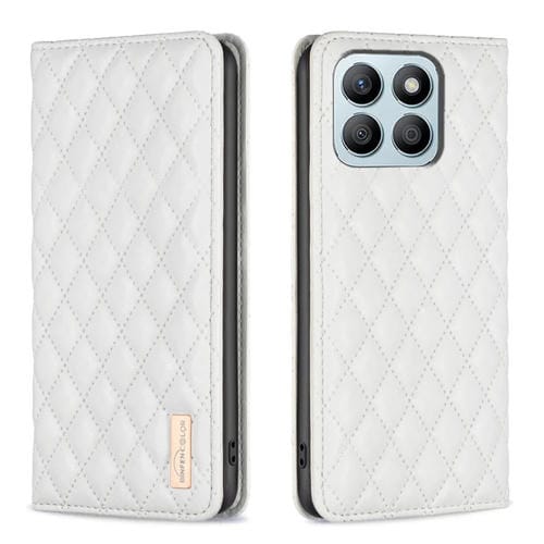 Funda para Honor X8B con Tapa de Cuero Magnético y Diseño Diamond Lattice (Blanco)