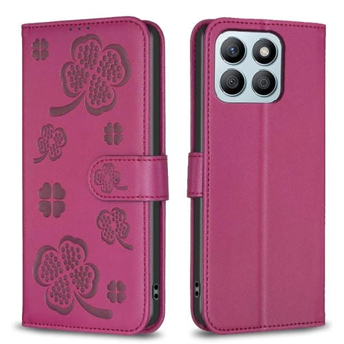 Funda de Cuero para Honor X8B con Relieve de Cuatro Hojas (Rojo Rosa)