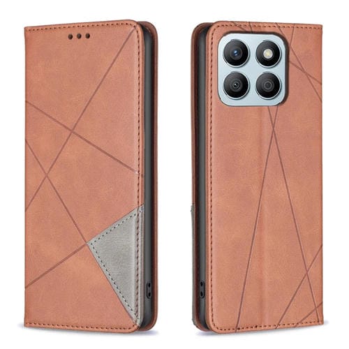 Funda de Cuero Magnético para Honor X8B con Textura Rombo (Marrón)