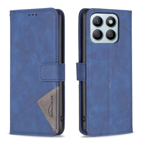 Funda para Honor X8B de Cuero con Textura de Rombo y Hebilla Magnética (Azul)