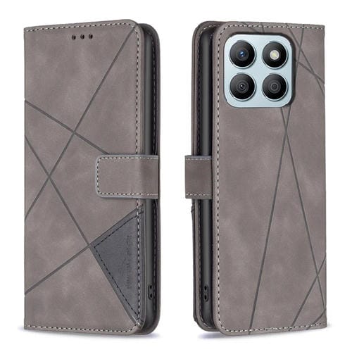 Funda para Honor X8B Cuero Textura de Rombo con Hebilla Magnética (Gris)