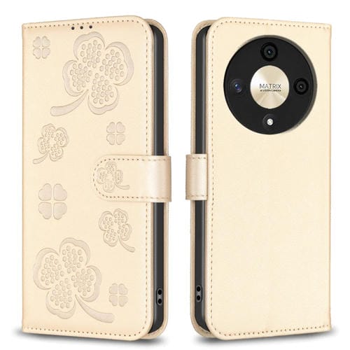 Funda de Cuero para Honor X9B Magic6 Lite 5G con Relieve de Cuatro Hojas (Dorado)
