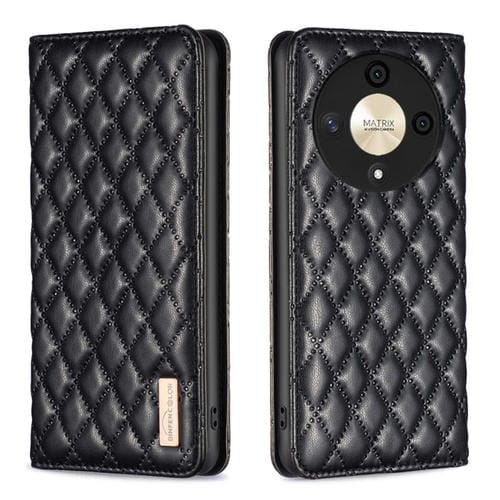 Funda para Honor X9B Magic6 Lite 5G con Tapa de Cuero Magnético Diamond Lattice (Negro)