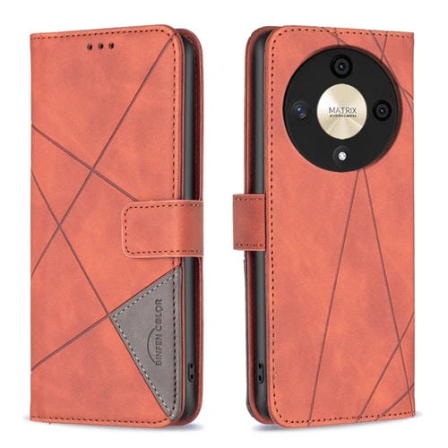 Funda para Honor X9B y Magic6 Lite 5G de Cuero con Textura de Rombo y Hebilla Magnética (Marrón)