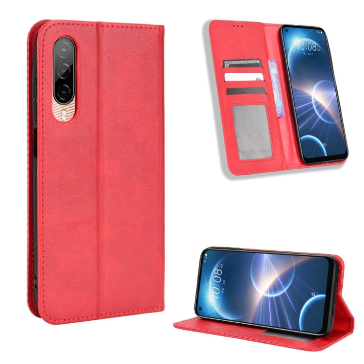 Funda de Cuero con Hebilla Magnética para HTC Desire 22 Pro Textura Retro (Rojo)