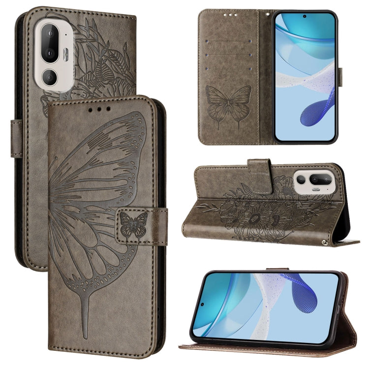 Funda de Cuero para HTC U24 Pro con Mariposa en Relieve (Gris)