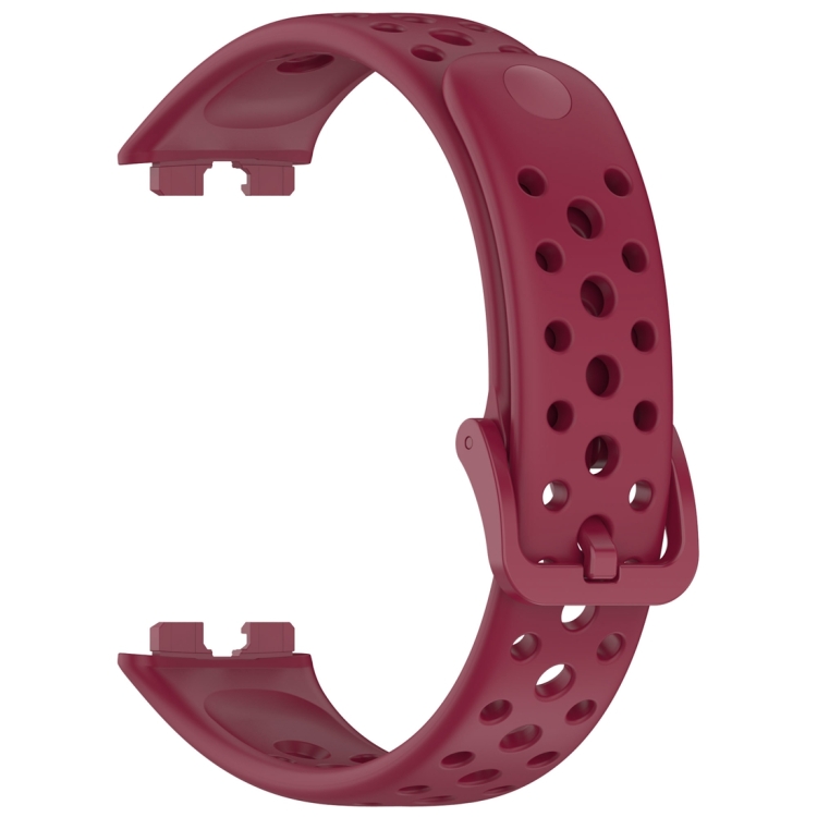 Correa de Silicona para Huawei Band 9/9 Nfc/8/8 Nfc con Botón de Clavo y Orificio Redondo (Rojo Vino)