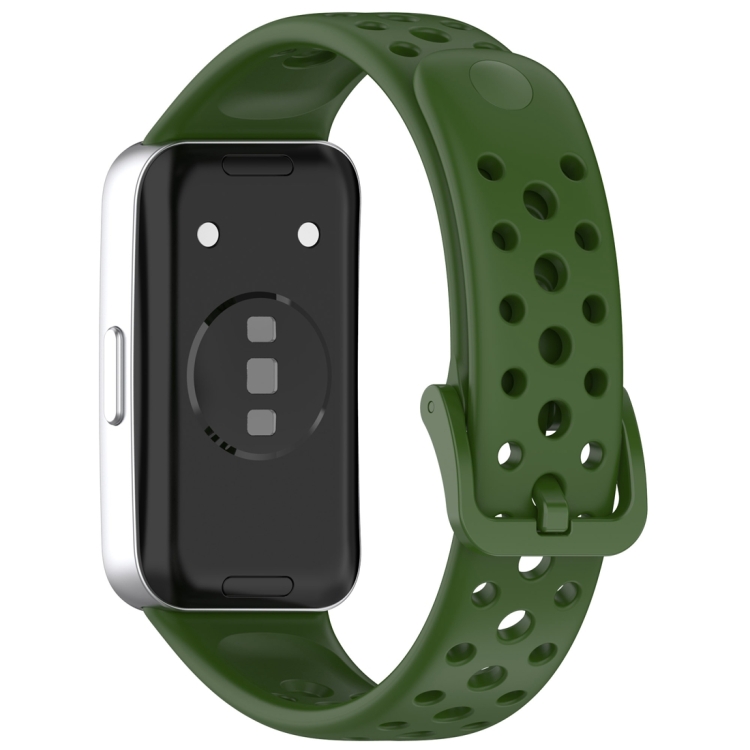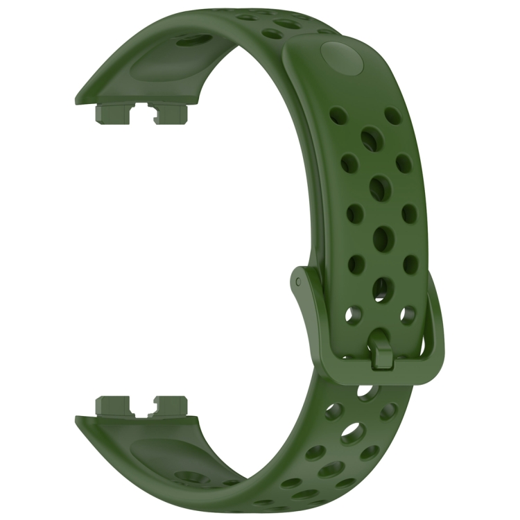 Correa de Silicona para Huawei Band 9/9 Nfc/8/8 Nfc con Botón y Orificio Redondo (Verde Oscuro)