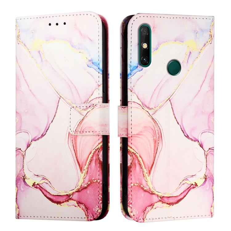- 1x Funda de Cuero con Tapa para Huawei Enjoy 20 Se / Y7A / P Smart 2021 Pt003 con Patrón Mármol (Oro Rosa)