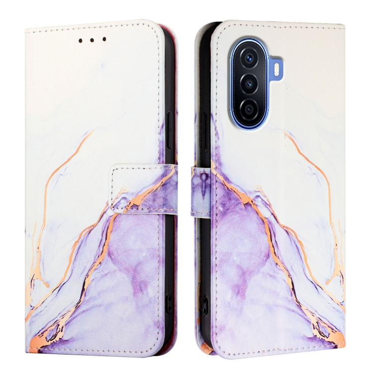 Funda de Cuero con Tapa para Huawei Enjoy 50 / Nova Y70 Plus Pt003 con Patrón Mármol (Blanco Púrpura)