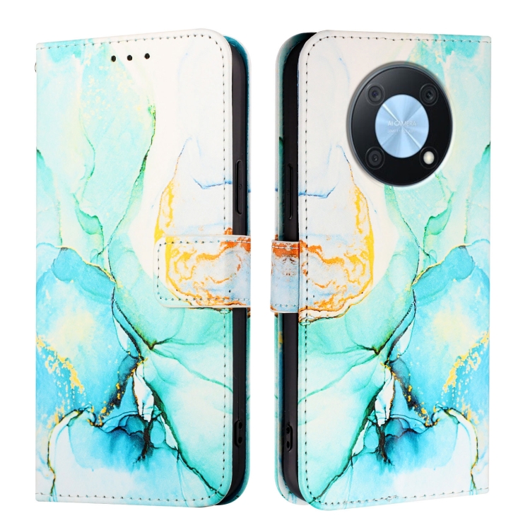 - 1x Funda de Cuero para Huawei Enjoy 50 Pro / Nova Y90 Pt003 con Tapa y Patrón de Mármol (Verde)