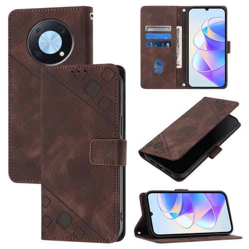 Funda de Cuero Skin Feel para Huawei Enjoy 50 Pro y Nova Y90 en Relieve (Marrón)