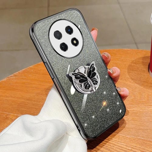 - 1x Funda TPU para Huawei Enjoy 60X con Soporte de mariposa y brillo degradado (Negro)