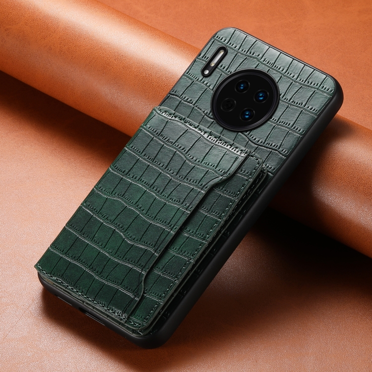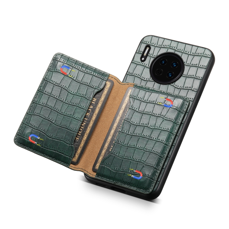 Funda para Huawei Mate 30 con Diseño de Bolsa para Tarjetas y Textura de Cocodrilo (Verde)