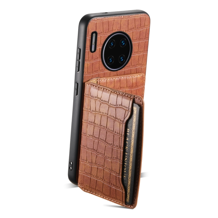 Funda para Huawei Mate 30 Pro con Diseño Bolsa para Tarjetas y Textura de Cocodrilo (Marrón)