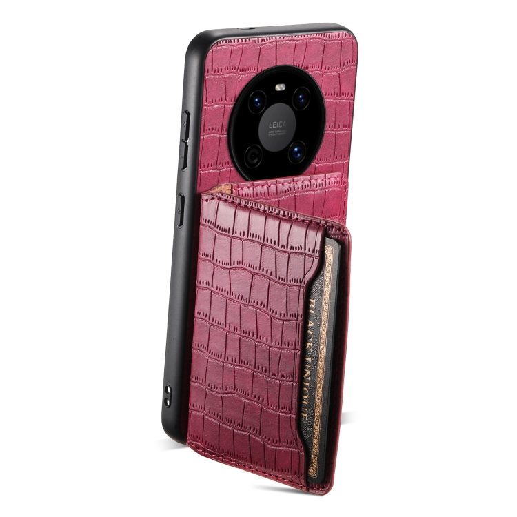 Funda para Huawei Mate 40 con Diseño Bolsa para Tarjetas y Textura de Cocodrilo (Rojo)