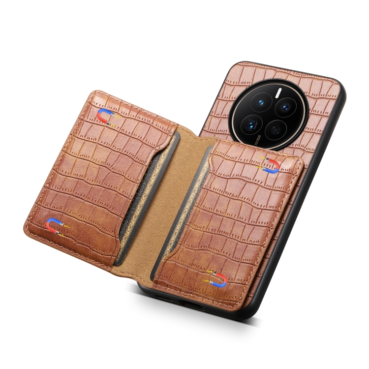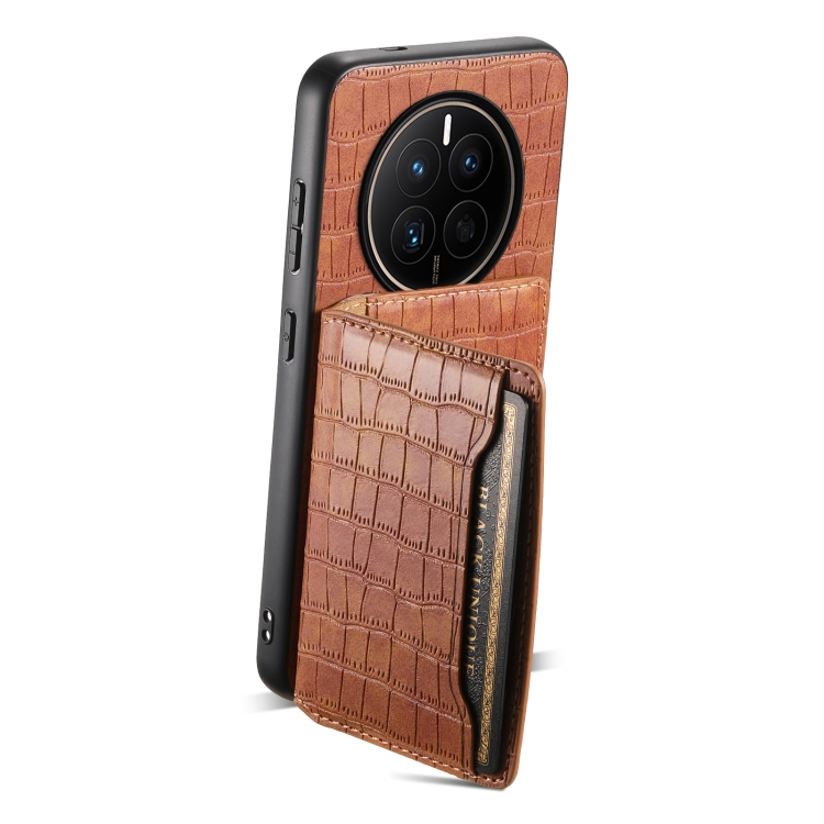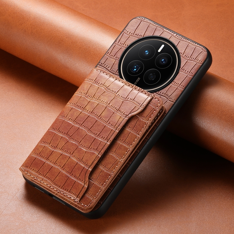 Funda para Huawei Mate 50 con Diseño de Bolsa para Tarjetas y Textura de Cocodrilo (Marrón)