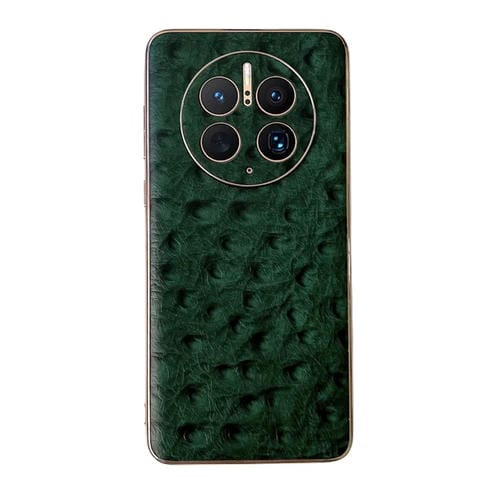 Funda para Huawei Mate 50 Pro con Revestimiento Nano Textura Avestruz Cuero Genuino (Verde)