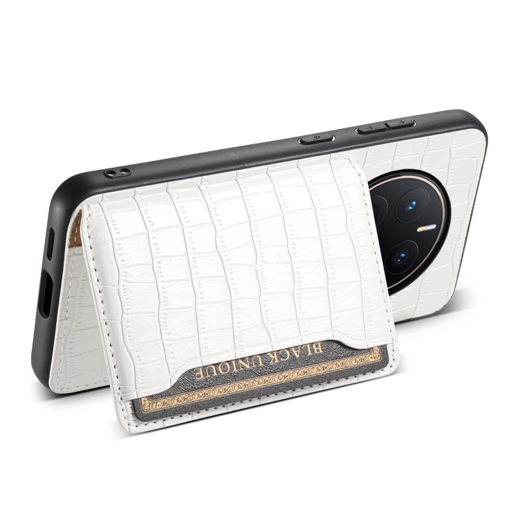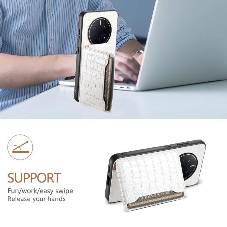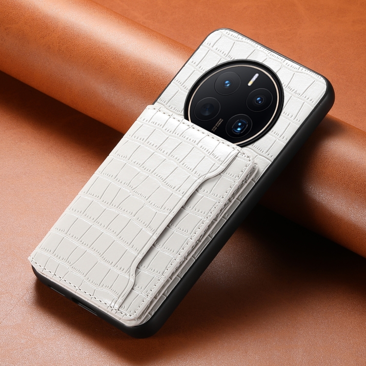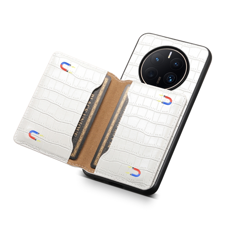 Funda para Huawei Mate 50 Pro con Diseño Bolsa para Tarjetas y Textura de Cocodrilo (Blanco)