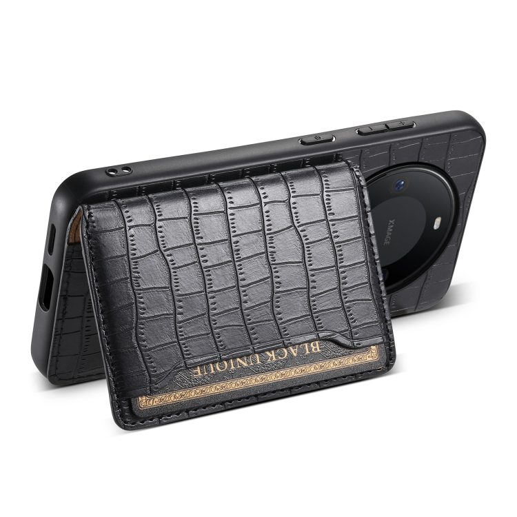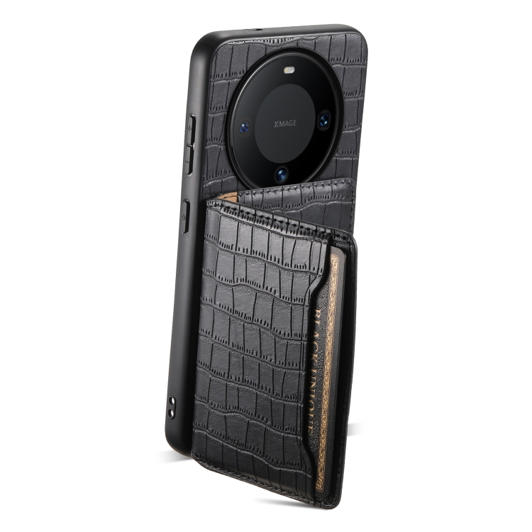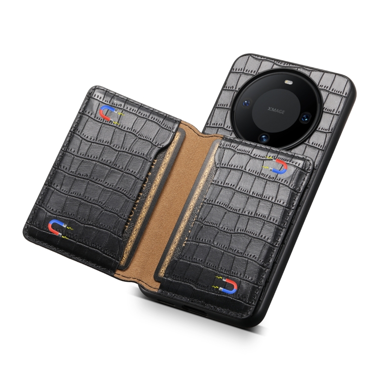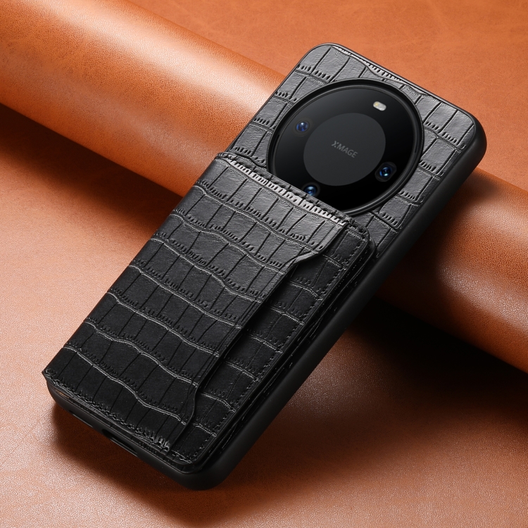 Estuche para Huawei Mate 60 con Diseño de Bolsa para Tarjetas y Textura de Cocodrilo (Negro)