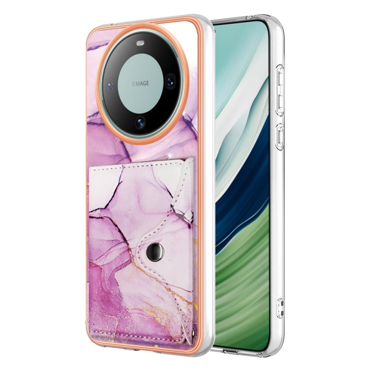 Estuche para Huawei Mate 60 con Ranura para Tarjeta Imd y Patrón de Mármol (Oro Rosa Púrpura)
