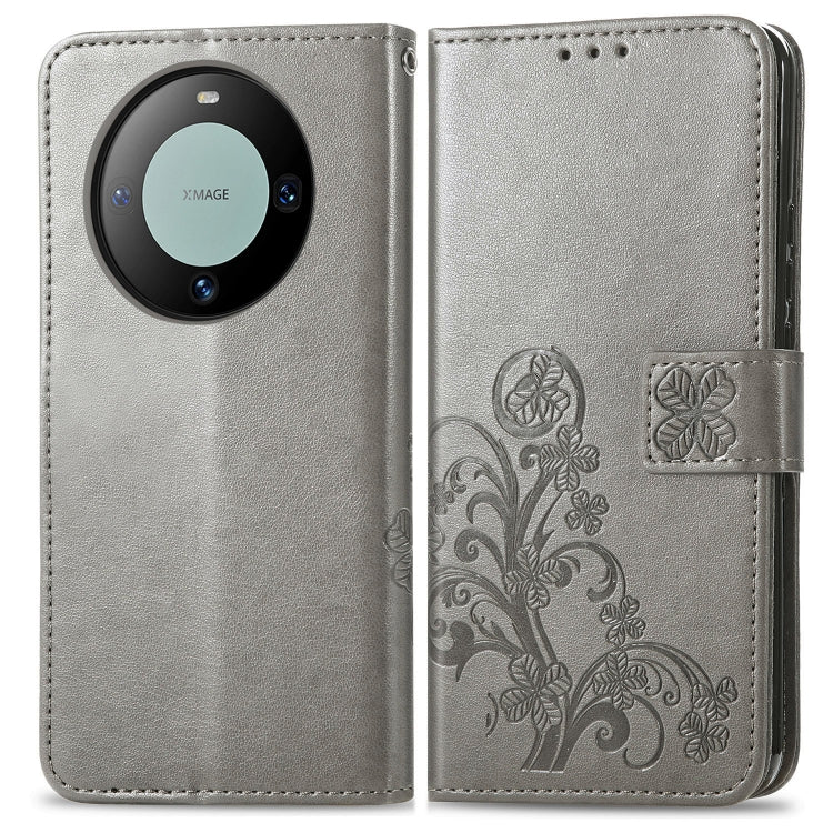 Funda de Cuero Repujado para Huawei Mate 60 con Cierre de Cuatro Hojas (Gris)