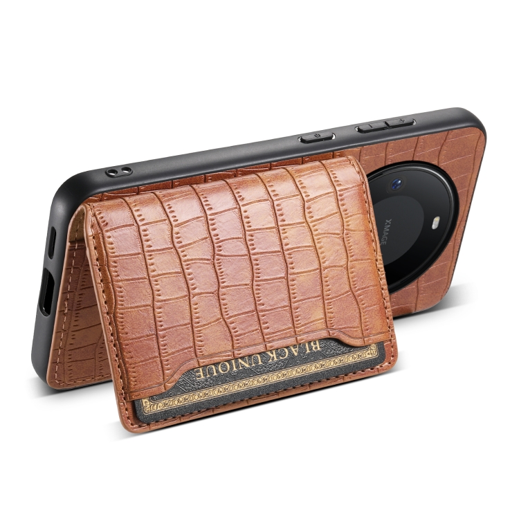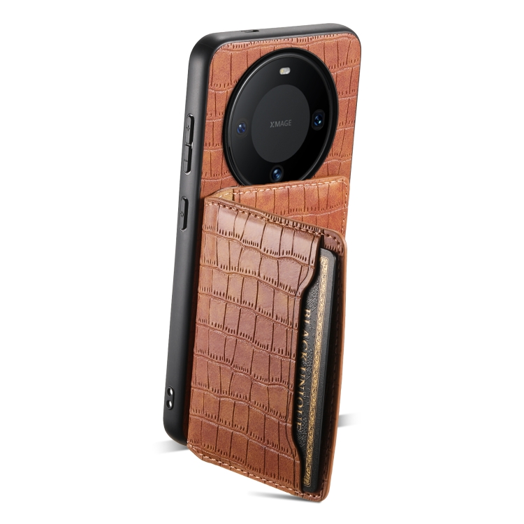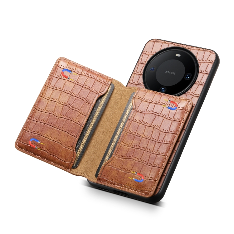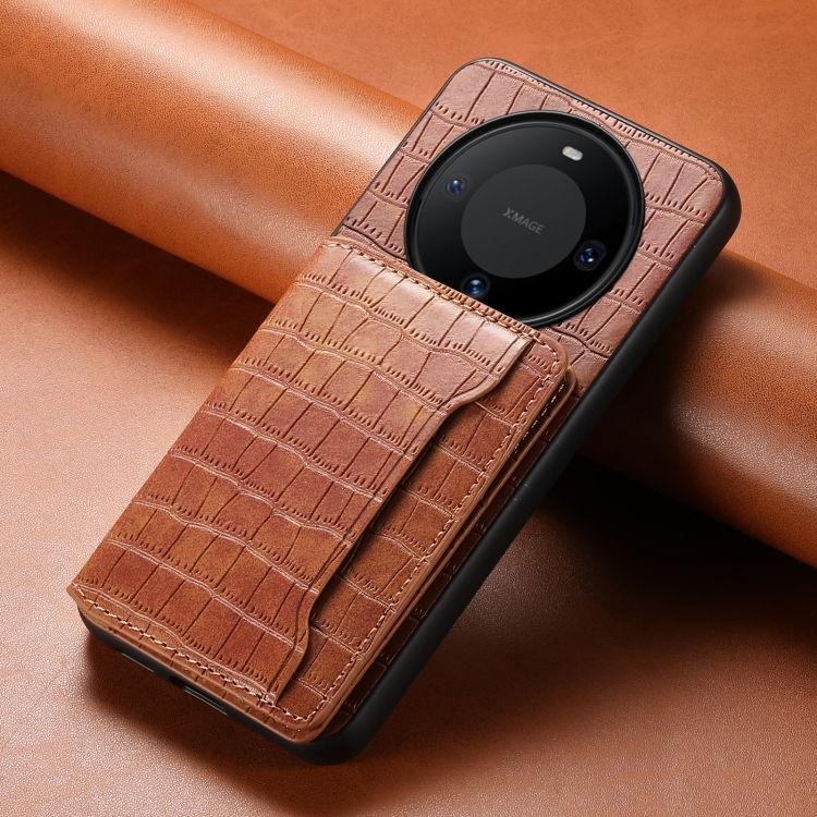 Funda para Huawei Mate 60 con Diseño de Bolsa para Tarjetas y Textura de Cocodrilo (Marrón)