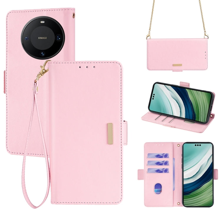 Funda de Cuero para Huawei Mate 60 Pro+ y 60 Pro con Cadena Cruzada (Rosa)