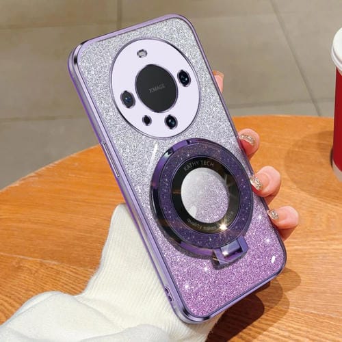 - 1x Funda TPU para Huawei Mate 60 Pro / 60 Pro+ con Soporte redondo y brillo degradado (Púrpura)