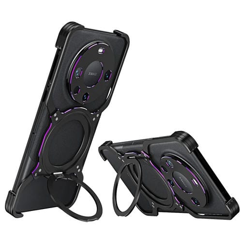 La Funda metálica para Huawei Mate 60 Pro (Negro Púrpura) está diseñada específicamente para ofrecer protección avanzada y funcionalidad al dispositivo. Fabricada en aleación con procesamiento de precisión, esta Funda desmontable se asegura mediante tornillos para un ajuste seguro. Incorpora un Soporte de anillo giratorio de 360 grados que facilita el uso estable del Teléfono, además de un brazo mecánico integrado que añade versatilidad en el manejo. Compatible con la Carga Inalámbrica MagSafe, permite reCargar el equipo sin necesidad de retirar la Funda. Su diseño incluye una Cubierta Protectora para la Cámara con orificios precisos, una estructura reforzada en las cuatro esquinas con esponja absorbente de impactos y un Panel Trasero hueco que mejora la disipación térmica, evitando el sobrecalentamiento durante usos prolongados.