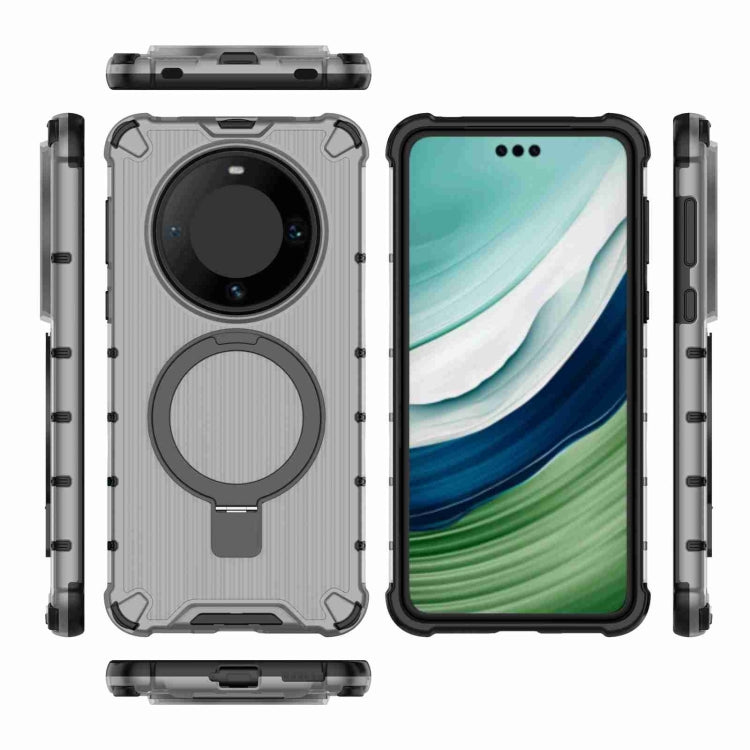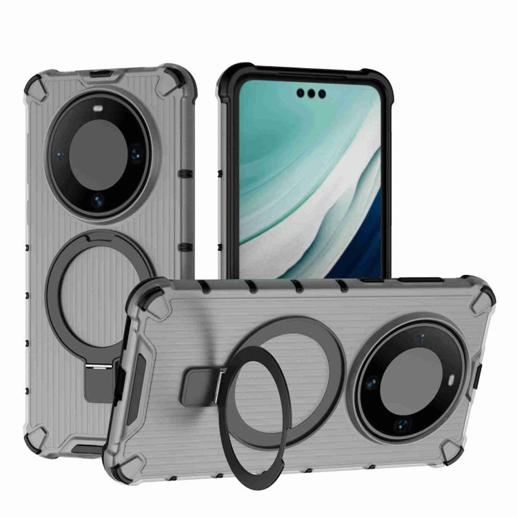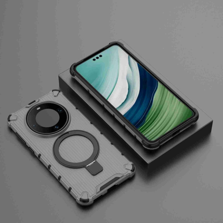 Funda para Huawei Mate 60 Pro con Soporte y Rejilla a Prueba de Golpes (Negro Transparente)