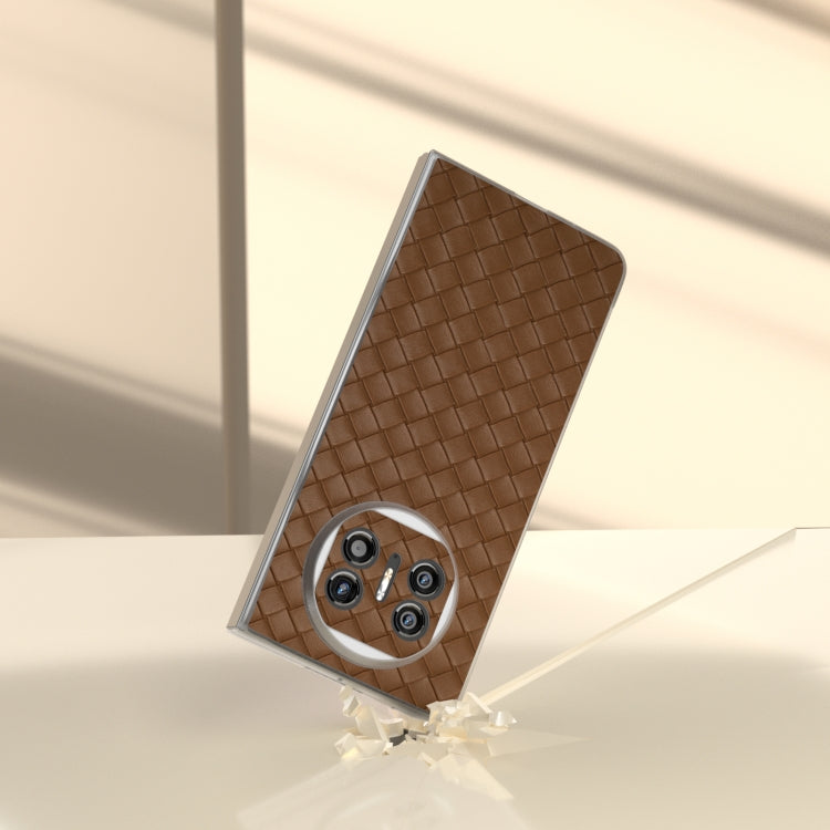 Funda para Huawei Mate X5 de PU con Marco Translúcido Esmerilado y Textura Tejida (Marrón)
