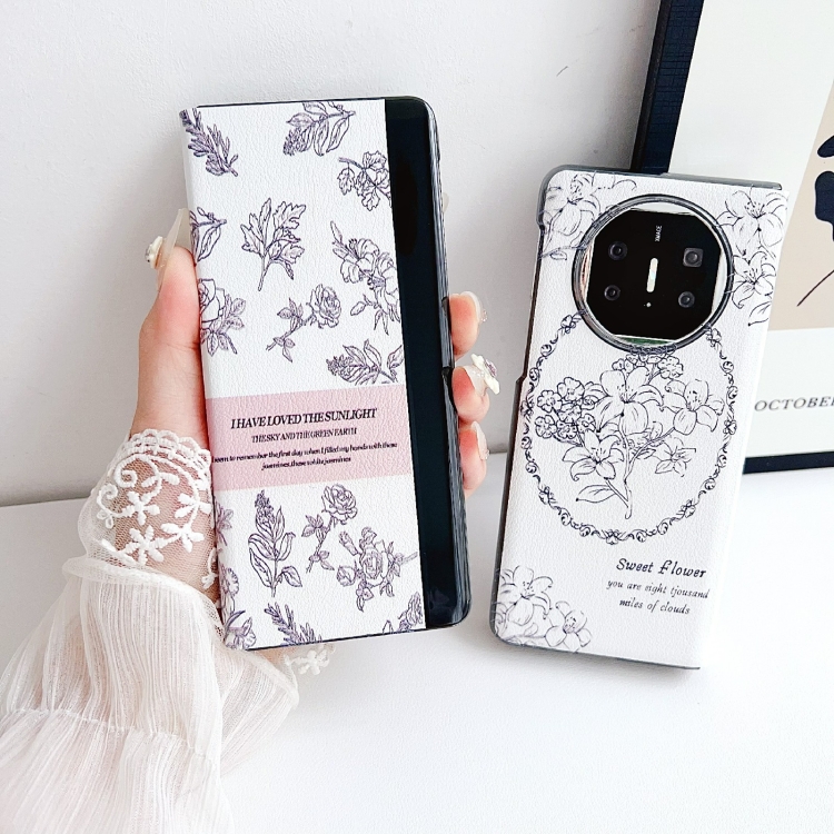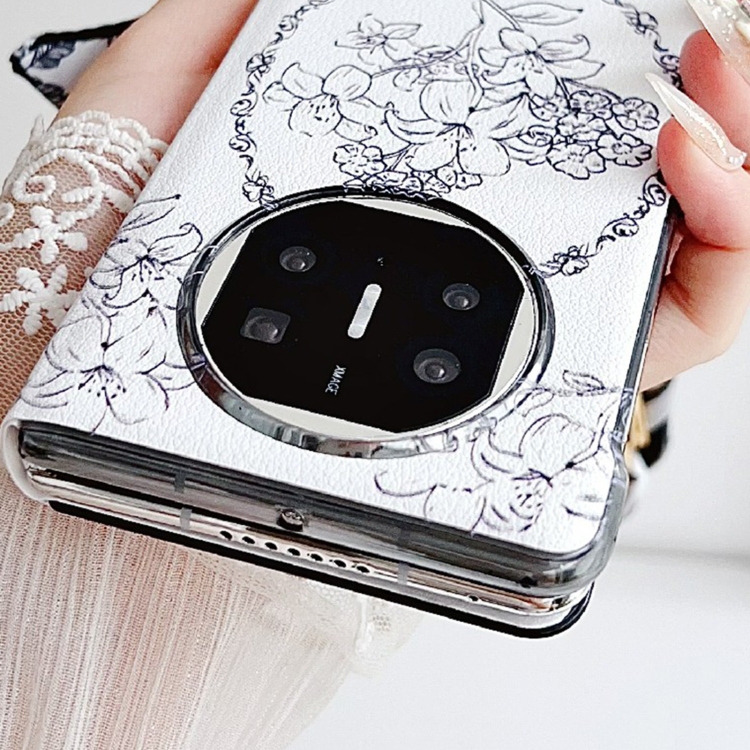 Funda de Cuero con Tapa para Huawei Mate X5 / X2 con Dibujo de Flores (Negro)