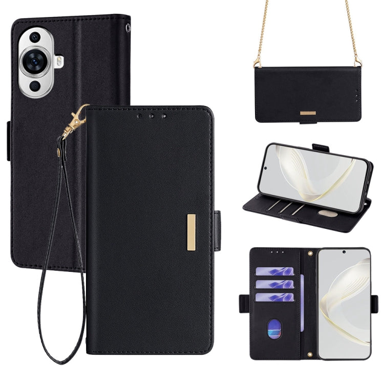 Funda de Cuero para Huawei Nova 11 4G con Cadena Cruzada (Negro)