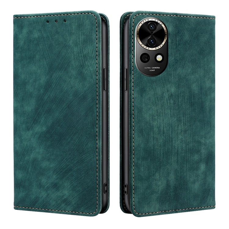 Funda de Cuero Magnética para Huawei Nova 12 5G con Rfid y Cepillo Antirrobo (Verde)