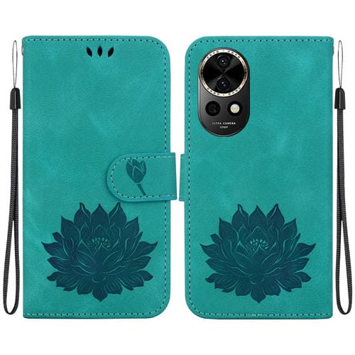 Funda de Cuero para Huawei Nova 12 con Relieve de Loto (Verde)