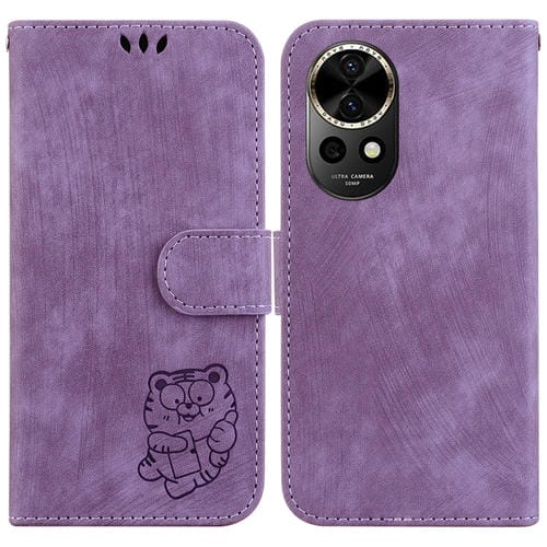 - 1x Funda de Cuero para Huawei Nova 12 con Relieve Little Tiger (Púrpura)