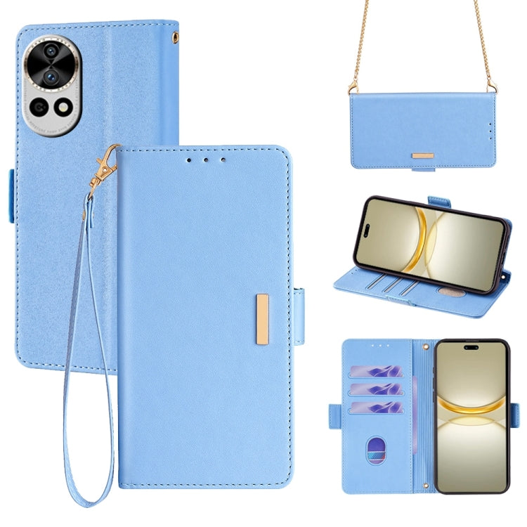 Funda de Cuero con Cadena Cruzada para Huawei Nova 12 Pro / 12 Ultra (Azul)
