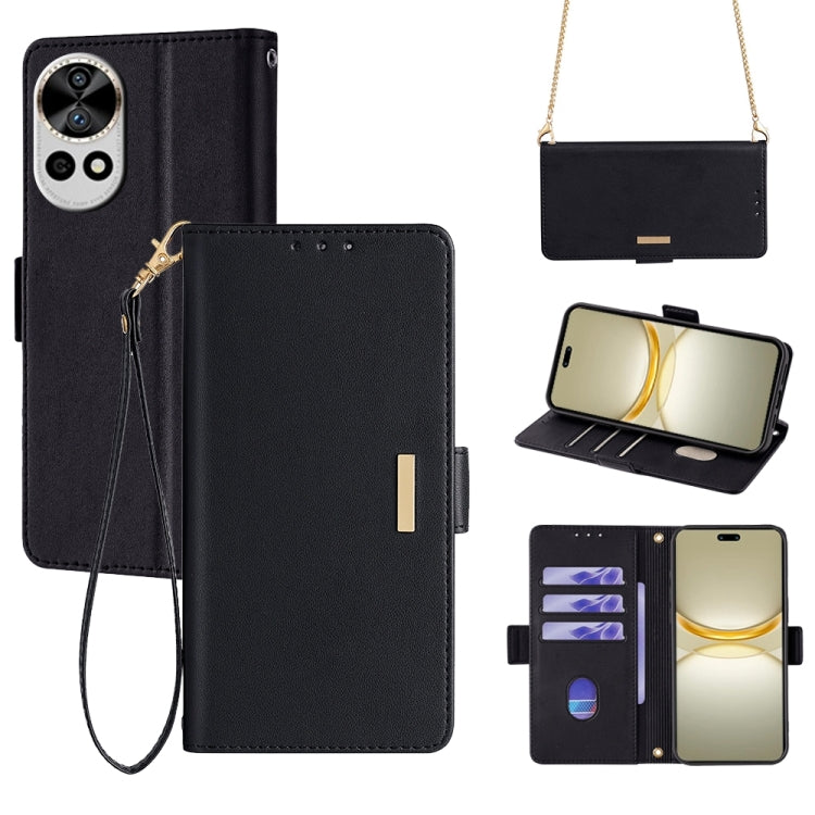 Funda de Cuero con Cadena Cruzada para Huawei Nova 12 Pro y 12 Ultra (Negro)