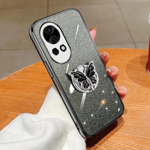 Funda TPU Huawei Nova 12 Pro con Soporte de Mariposa y Brillo Degradado (Negro)
