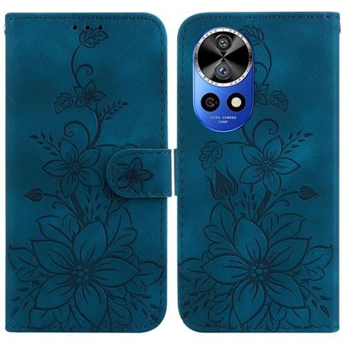 Funda de Cuero en Relieve para Huawei Nova 12 Pro Lily para Teléfono (Azul Oscuro)