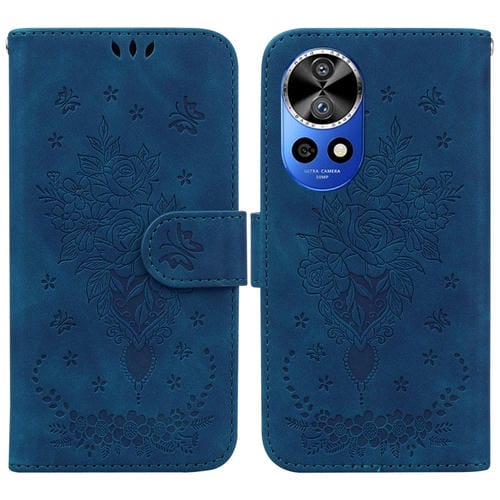 Funda para Huawei Nova 12 Pro y Nova 12 Ultra de Cuero con Relieve Mariposa y Rosa (Azul)